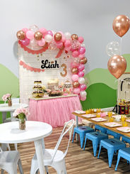 We can offer themed toddlers and kids parties, such as a princess tea party, adventure, treasure hunt, pirate, and many more options. Celebrate your first birthday with us! We have a super cute high chair perfect for photos.